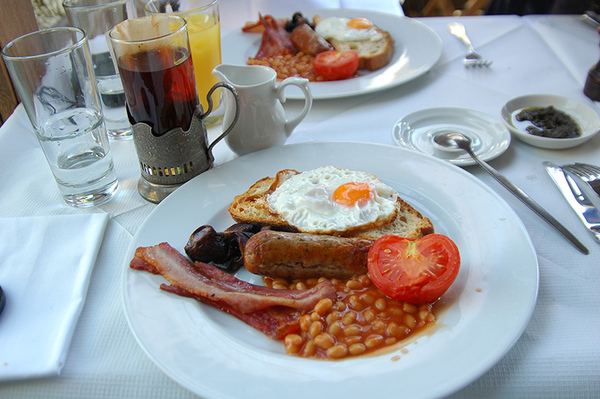 幸好這星期又多認識了朋友,並且是愛外出的朋友,我也不用捨不得花錢只是在外走走而已。首先在週末便到了間小餐廳 Chez Kristof 點了英式早餐,只是…它的營業時間是中午開始,賣的卻是英式早餐,噗。總是聽朋友說英國的早餐都只是土司和喜瑞兒(而我自己平常也是這樣吃的沒錯)只是也想不到真正的英式早餐是這樣的。